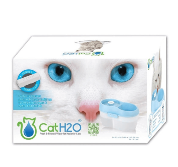 Fuente de Agua CatH2O entrega un flujo continuo de agua filtrada para que tu gatito este siempre hidratado. Incentiva a tu gato a beber agua limpia y pura de forma cómoda y simple. Además de hidratar a tu felino, este bebedero incluye una pastilla dental que ayuda a mantener la higiene dental de tu gato en perfecto estado.
