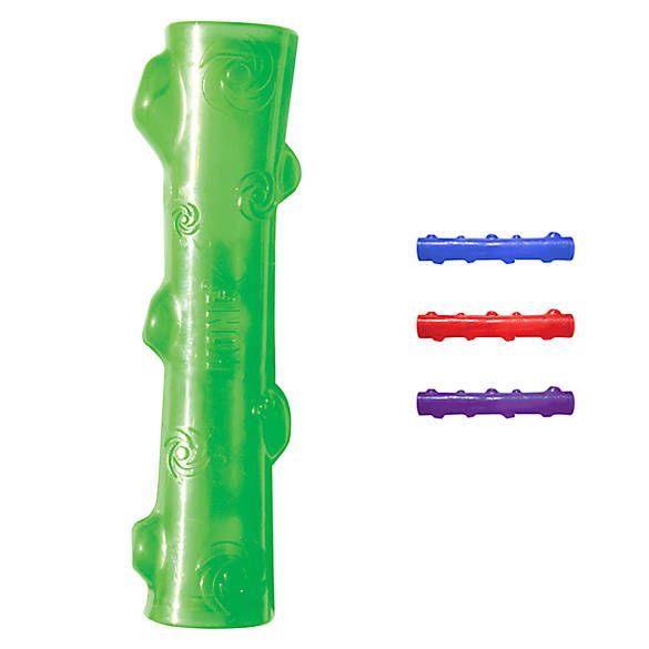El KONG Squeezz Stick® es un juguete para perros ideal para el juego de buscar y recoger. El divertido rebote y el chirriador empotrado proporcionan un juego seguro, mientras que las diferentes texturas aportan más diversión para su perro.