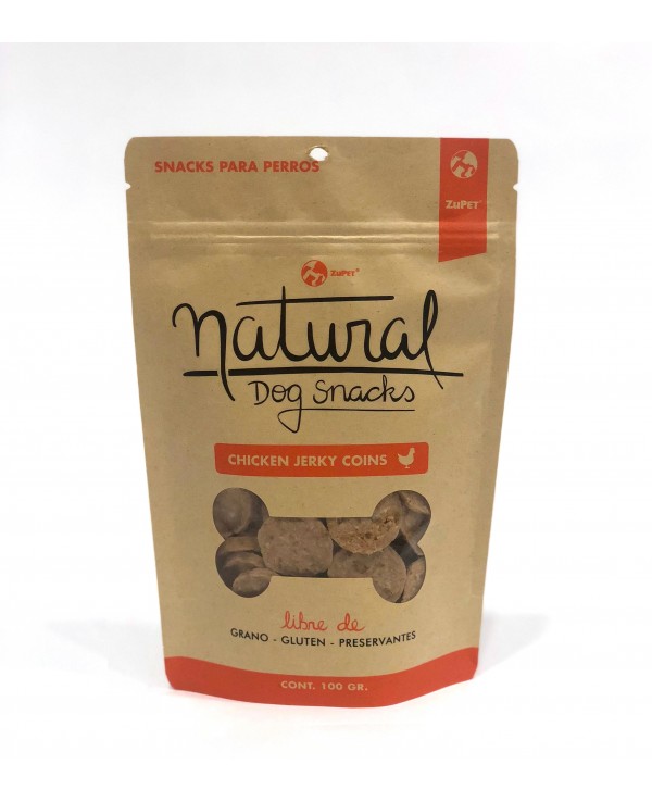 El Chicken Jerky Coins de Natural Dog Snacks es el snack ideal para tu perro porque es 100% natural, libre de glúten, libre de granos, no contiene preservantes, y es súmamente rico